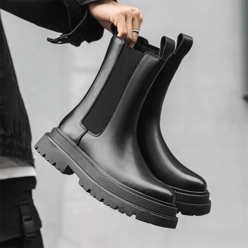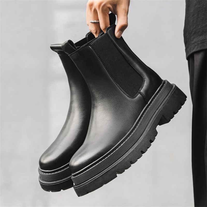 black chunky Chelsea boots.