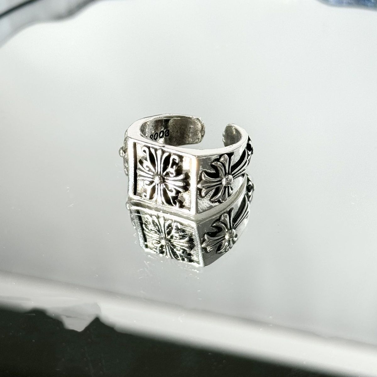 cross signet band ring,