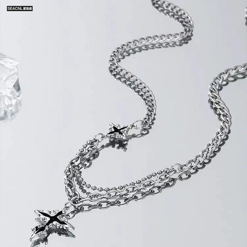 Double Chain Black Star Necklace